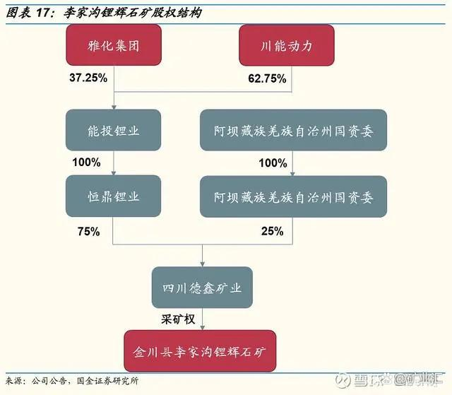 四川能投鋰業(yè)控制的德鑫礦業(yè)擁有李家溝鋰礦采礦權(quán),2021年,川能動力以9.27億元完成對四川能投鋰業(yè)62.75%股權(quán)的收購,剩余股權(quán)(37.25%)歸屬于雅化集團。