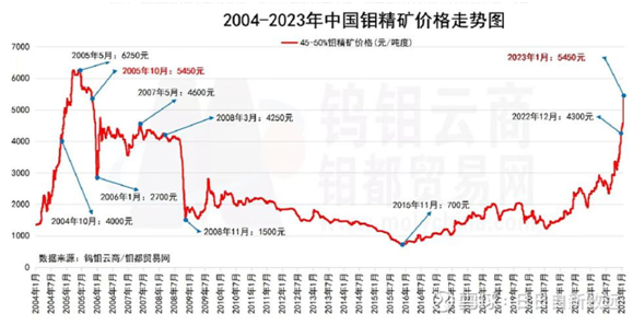 截至1月30日,據大宗原材料網站億覽網披露,鉬精礦價格重回2005年10月5450元的高點。自2015年11月至今,國內鉬精礦價格已上漲6.78倍。