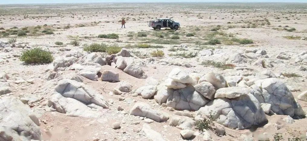 4.1烏姆阿奎尼納礦床礦床位于毛里塔尼亞西部的努瓦迪布灣省(Dakhlet Nouadhibou),西距努瓦迪布(Nouadhibou)港口130km。礦床為熱液脈石英型。礦石呈淺灰色的半透明狀、光滑透明狀,部分采樣礦石的SiO2含量大于99.8%。地表出露的礦體表現(xiàn)為破碎的大塊脈石英礫石,其上覆蓋少量紅土。石英的推斷資源量為500~1000萬噸(Feytis,2010),但因缺少鉆孔驗(yàn)證和測試分析以及必備的選礦實(shí)驗(yàn),可用作高純石英原料的資源量不明。截至目前未進(jìn)行有效的采礦活動。