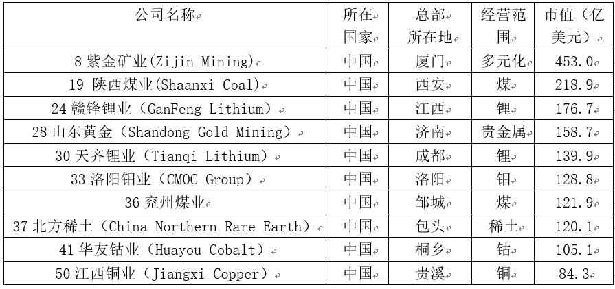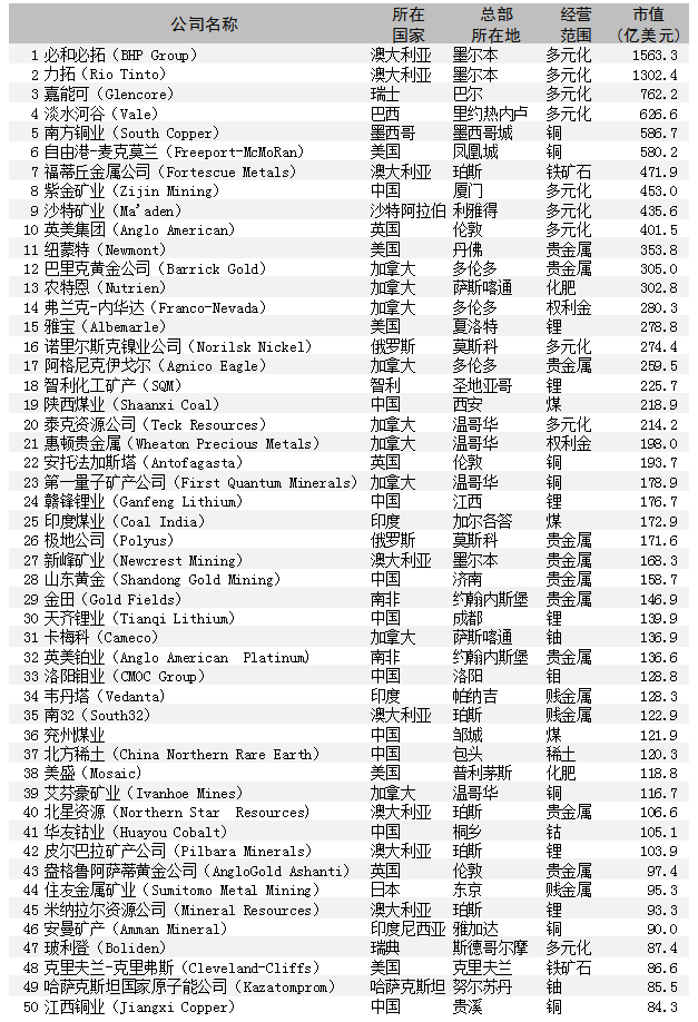 目前,50大礦企市值合計(jì)為1.38萬(wàn)億美元,回落到2021年6月底的水平。