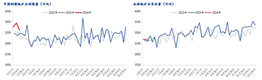 根據Mysteel全球鐵礦石發運量數據顯示,近期由于臺風影響,部分礦山港口檢修,最新周度全球鐵礦發運總量大幅回落。上周(4.8-4.12)全球發運量周值為3245.3萬噸,周環比減少142.5萬噸。但今年累計發運情況看,全球鐵礦石發運累計同比增量為1512.5萬噸,其中巴西累計同比增量為1254.8萬噸,非主流累計同比增量為1284.5萬噸,澳洲則表現為累計同比減少1026.8萬噸。受天氣因素影響,預計近幾周全球鐵礦石發運量有所下降,待澳洲颶風擾動暫告一段落后,預計發運水平還會有顯著增加。到港量與全球發貨量數據相似,根據Mysteel45港鐵礦石到港量數據顯示,上周(4.8-4.12)值為2437萬噸,周環比減少4萬噸。今年以來,45港鐵礦石到港量累計同比增加1994萬噸,其中澳洲累計同比減少1120萬噸,巴西累計同比增加1836萬噸,非主流累計同比增加1278萬噸。
