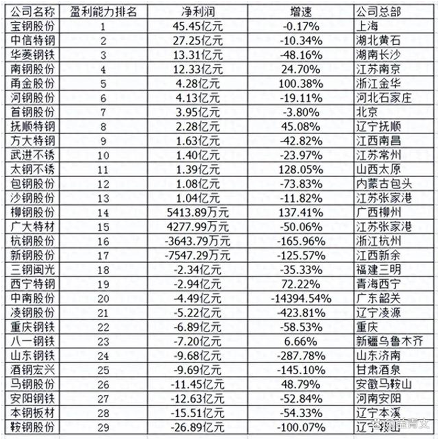 在29家上市鋼企中,有15家企業在2024年上半年實現盈利,另外14家則是出現虧損。其中,寶鋼集團上半年實現凈利潤最高,為45.45億元;而鞍鋼股份虧損最多,上半年虧損達26.89億元。山東省屬鋼鐵企業山東鋼鐵,上半年則是虧損9.68億元,同比下降287.78%。