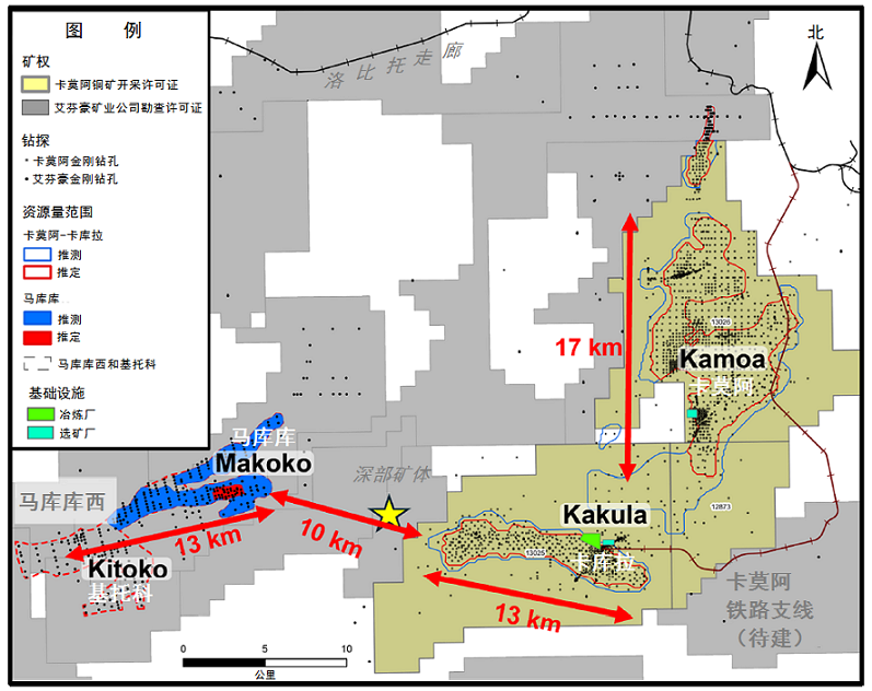 沿走向長度可以同卡庫拉礦體相比,而卡庫拉銅礦床是卡莫阿(Kamoa)-卡庫拉(Kakula)聯合礦第1和第2階段精礦廠的銅礦石來源。卡庫拉銅礦床西緣距離馬庫庫礦床東緣大約10公里。