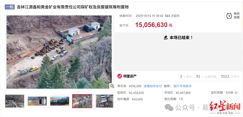 10月212025 成交價(jià)1500萬(wàn)元:出價(jià)931輪,溢價(jià)率達(dá)489%!吉林一金礦探礦權(quán)等被拍賣(mài) 行業(yè)新聞 Read more