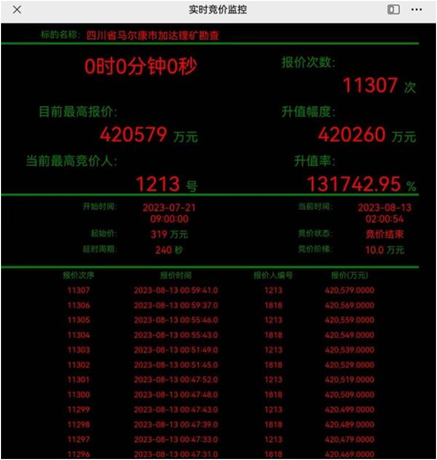 鏖戰(zhàn)三天三夜,四川省馬爾康市加達鋰礦勘探權(quán)拍賣塵埃落定,最終大中礦業(yè)力壓群雄拔得頭籌